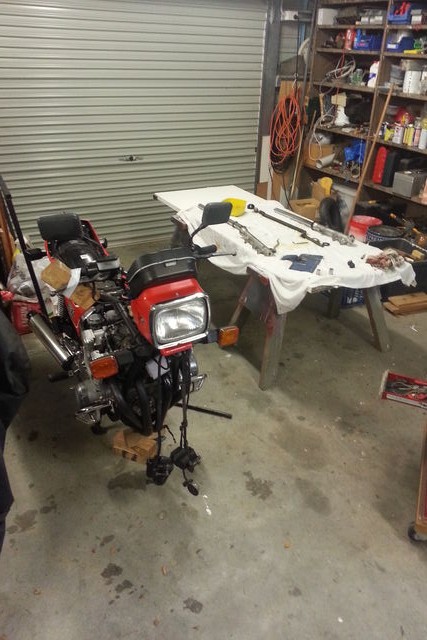 2015-04-08 Fork seal replacement. After pulling forks apart found that the bushes were worn so have to replace those as well. Also noticed one fork was missing bits that you can’t buy any more so I made those on a lathe.